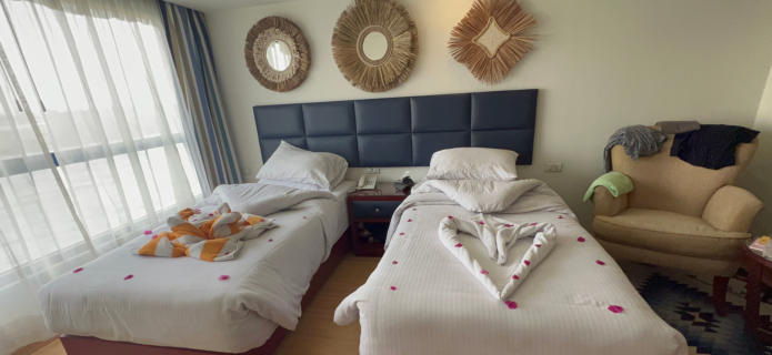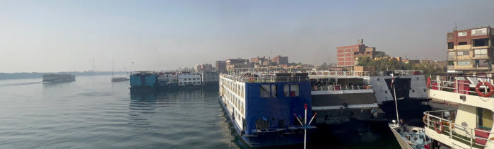Sonnenaufgang am Nil Nil-Kreuzfahrtschiffe soweit das Auge reicht der Nil wird ausgebaggert unsere Schiffssuite Kom Ombo Tempel Kom Ombo Tempel
