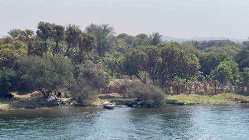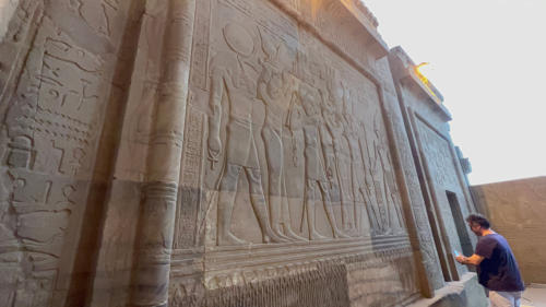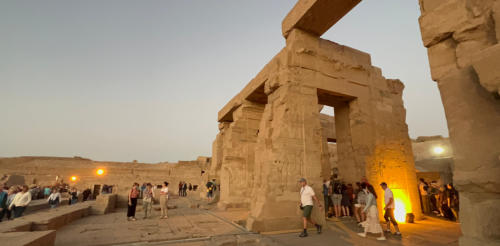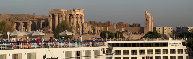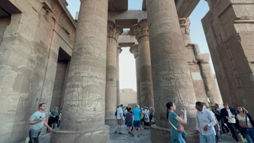 Die Nacht haben wir auf dem Schiff am Anleger in Esna verbracht. Hier liegen wir mit der Nil-Serenity nebeneinander als viertes äußeres Schiff am Kai. Gegen halb elf starten wir nach Edfu. Hier besichtigen wir am Nachmittag den Kom Ombo Tempel, ein Doppelheiligtum.