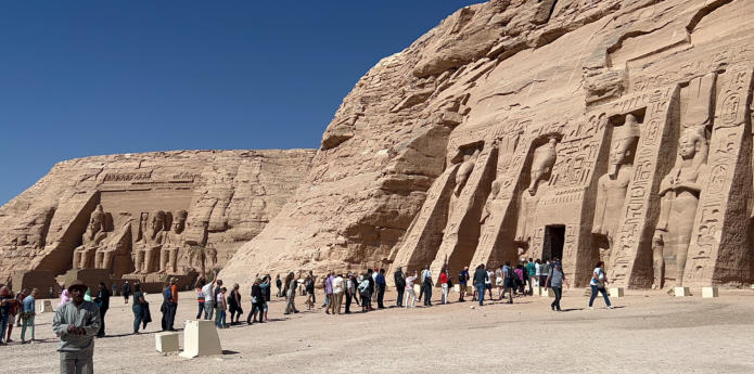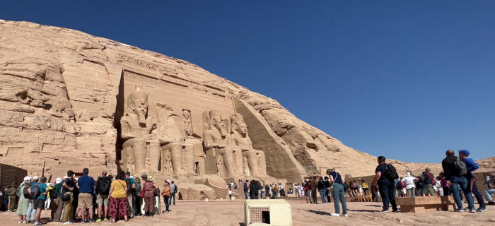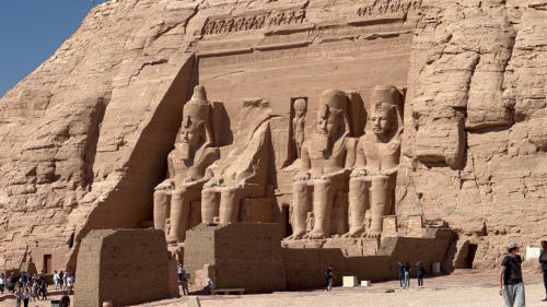Der Bus startet heute morgen um 5 Uhr in Richtung Abu Simbel. Nach 4 Stunden erreichen wir diesen geschichtsträchtigen Ort. Diesen Tempel ließ Ramses II. mitten in der Einsamkeit der Nubischen Wüste errichten.