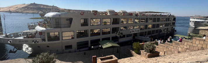 im Bus der große Tempel rechts: der kleine Tempel und wieder zurück auf dem Nil-Schiff Feluken auf dem Nil am Abend
