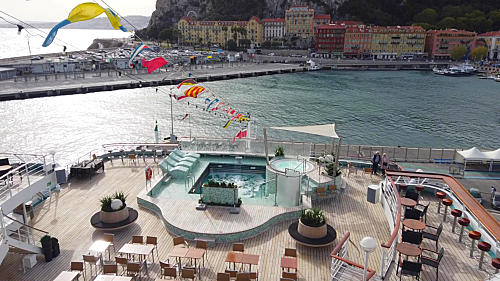 Nizza Mit dem Taxi fahre ich zum Flughafen Düsseldorf, wo es mit EuroWings nach Nizza geht. Nach der Landung in Nizza werden wir mit dem Bus zur Amadea, unserem Kreuzfahrtschiff, gebracht. Nach einem Corona-Schnelltest beziehen wir unsere geräumige Kabine.