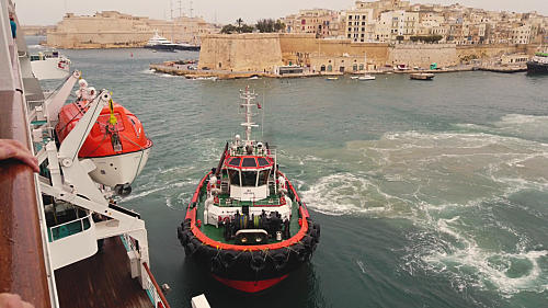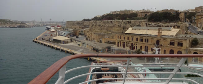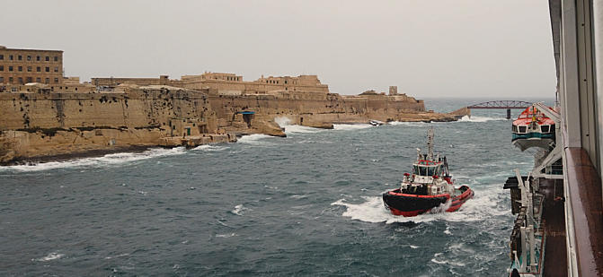 Anlegemanöver in Valletta Innenansicht MS Amadea Blick vom Heck der Amadea auf Malta