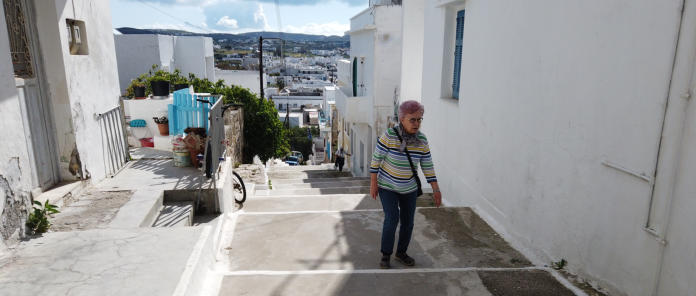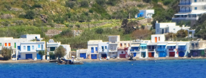 Viele Treppen und Stufen auf Milos Kirche auf Milos In diesen bunten „Garagen“ werden im Winter die Fischerboote gelagert
