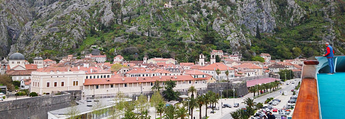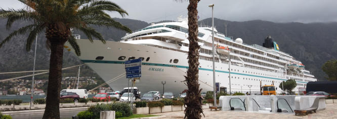 Einfahrt in den Fjord von Kotor die MS Amadea am Anleger in Kotor die Altstadt von Kotor vom Schiff aus gesehen Kotor Uhrenturm Impressionen KOTOR