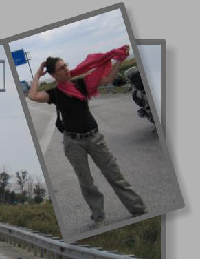 an der Grenze nach den Formalitäten in der Türkei.Bea testet schon mal ihr Kopftuch.