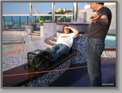 Bei schönem Wetter haben wir uns über Nebenstrassen auf den Weg nach Ancona gemacht. Beim leckeren Fischessen in einem sehr schönen und guten Lokal störte uns Günter per Handy und beorderte uns sofort zur Fähre.Das Beladen der Fähre ging problemlos.