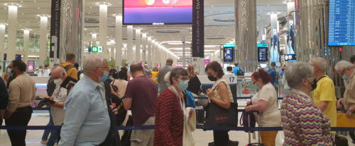 Um 6 Uhr in der Früh landet der Flieger in Dubai. Ein PCR-Test ist nicht mehr erforderlich. Mit dem Taxi fahre ich die 60 Kilometer zum Hotel in Sharjah. Die Temperatur: 27 Grad. Um 10.30 Uhr kann ich schon aufs Zimmer und falle todmüde ins Bett. Mit den beiden potugiesischen Tourteilnehmern bin ich zum Abendessen verabredet.