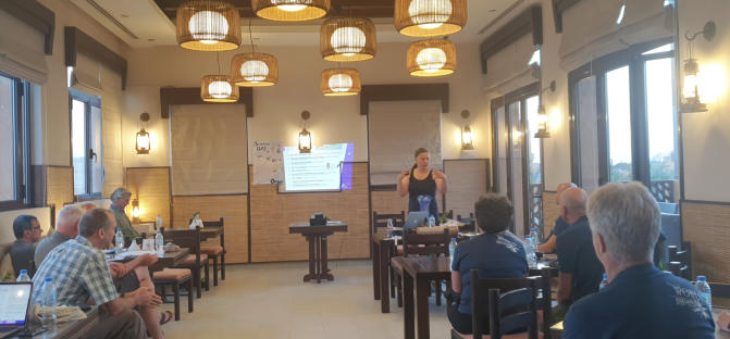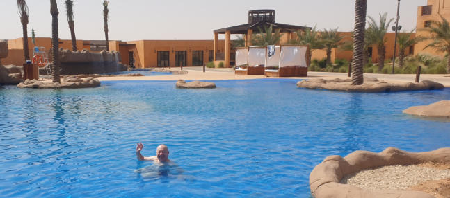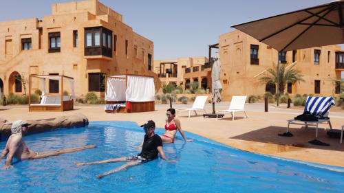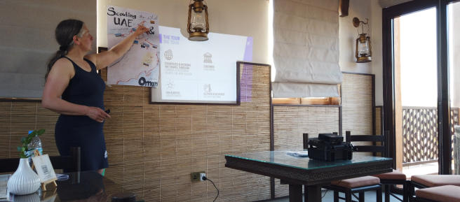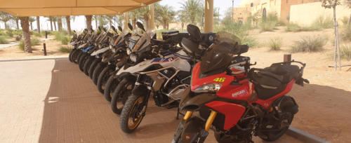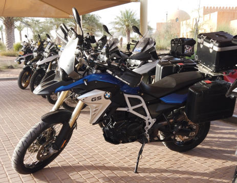 erster fachlicher Gedankenaustausch im Pool so kann ich es aushalten Da sind unsere Motorräder Diese BMW F800GS werde ich fahren Erste Einweisung Angela voll in Aktion Wir hören aufmerksam zu