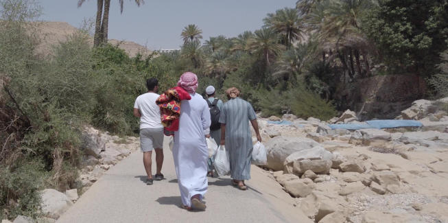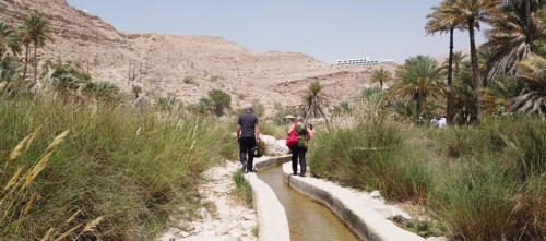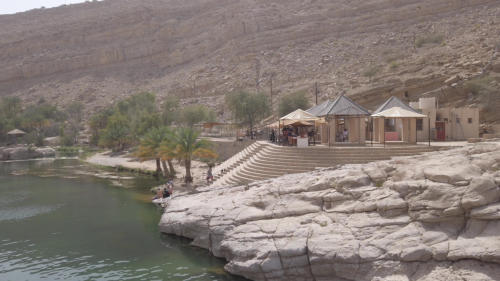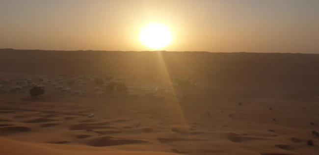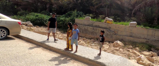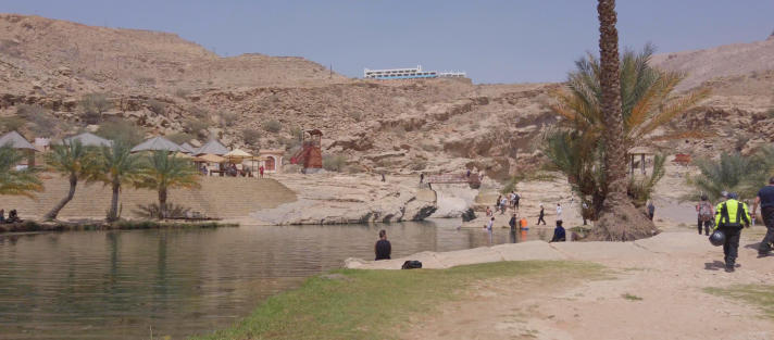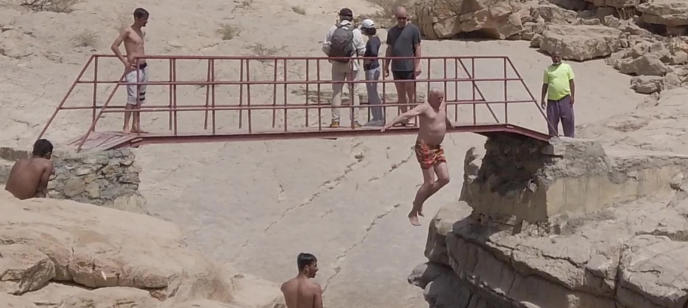 Zuerst besuchen wir da Wadi Bani Khalid, wo unterirdische Quellen einen kleinen See speisen. Einige von uns nahmen ein erfrischendes Bad. Weiter ging es mit Allradfahrzeugen in die Wüste zum Erlebnis Sonnenuntergang. Wadi Bani Khalid Mario wagt den Sprung von der Brücke