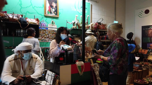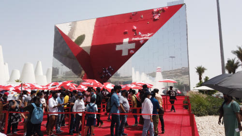 Die Expo haben wir mit der Metro besucht. Vor der deutschen Ausstellung musste man 3 Stunden warten, bei 37 Grad Wärme haben wir sie nicht besucht. Karl war enttäuscht, dass das österreichische Gebäude heute geschlossen ist. Abends haben wir die Lichtschau am Burj Khalifa besucht. Mit 828 Metern ist es das höchste  Bauwerk der Welt. Metrostation in der EXPO angekommen Madagaskar eine riesige Pinwand mit solidaritätsbekundungen zur Ukraine auf dem Weg zu den Dubai Wasserspielen Dubai Wasserspiele Burj Khalifa Lichtschau