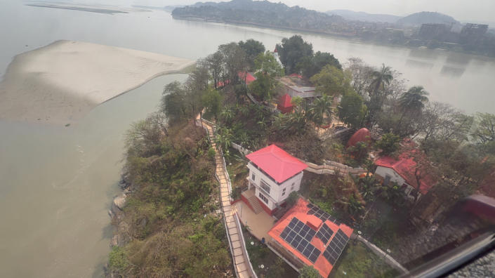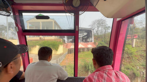 Hier in Guwahati unweit unseres Hotels gibt es eine Seilbahn über den Brahmaputra. Die Seilbahn ist 1800 m lang. Natürlich haben Günter und ich die Seilbahnfahrt wahrgenommen. Danach haben wir eine kleine grüne Oase, den Nehru Park, aufgesucht. Und am Nachmittag sind wir noch einmal durch den Ort gebummelt.