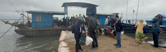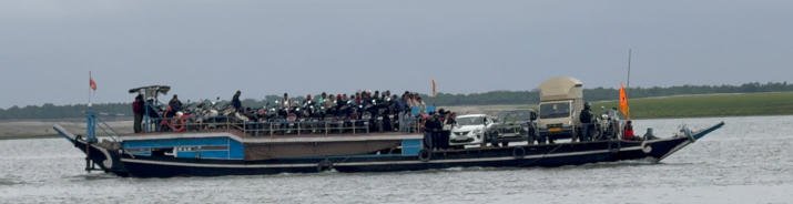 Heute geht es zur Majuli Insel.  Die Insel ist die größte Flussinsel in Indien.Wir müssen mit der Fähre über den Brahmaputra übersetzen. Gegen 16:00 Uhr treffen wir bei trockenem Wetter in unserer Unterkunft ein. Wir sind gerade eine Viertelstunde auf dem Zimmer, und es beginnt wieder zu regnen.