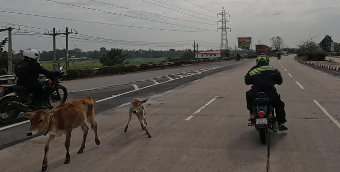 Auf dem Weg zur Baustelle Und noch ein Geisterfahrer auf der Autobahn Da staunen die Jungs, was wir Motorradfahrer treiben Dieses Plakat fand ich an einer Tankstelle. Ohne Schutzhelm kein Benzin. „Dann will ich das Kind mal schaukeln“ Diese Tierfiguren scheinen in Indien sehr begehrt zu sein Wieder im Teegebiet Die Tücher Teepflückerinnen gehen zur Arbeit Ein kleiner Tempel im Naturpark Der Klassiker in Indien: Tiere auf der Fahrbahn Wir biegen zum Hotel ab