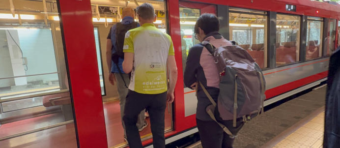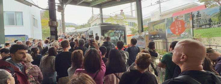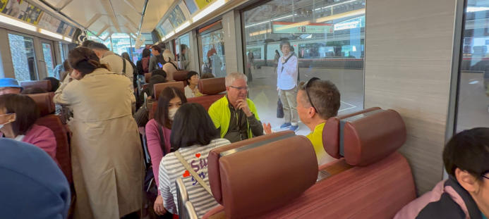 Heute Morgen verlassen wir Tokio mit dem Zug. Wir bewegen uns auf Japans höchsten Berg zu, dem Fuji. Wir steigen erst in eine Standseilbahn und dann in eine klassische Seilbahn um. Wir übernehmen die E-Bikes, und es geht über 50 km zu unserem Ziel dem Yamanaka See.