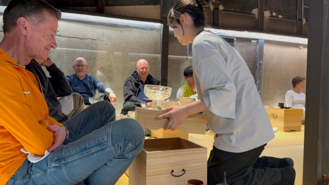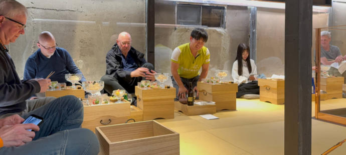 Es geht heute ostwärts bis Nagano. Hier verladen wir unsere Fahrräder ins Begleitfahrzeug. Wir selber fahren mit dem Shinkansen nach Kanawa. In einem besonderen japanischen Restaurant haben wir zu Abend gegessen.