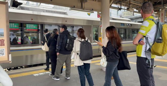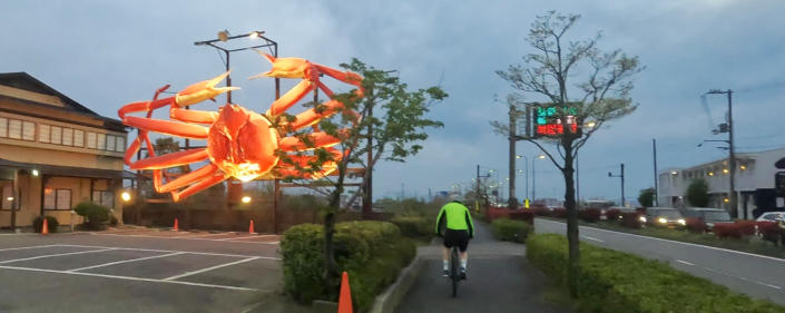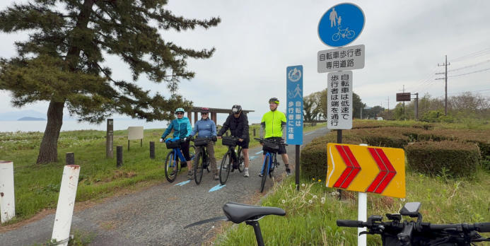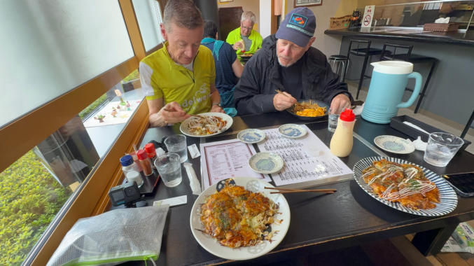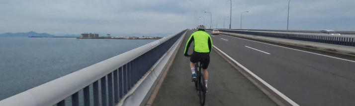 Frühstück mit Panorama Aussicht im Konruko-en Garten Mit dem Zug, weiter nach Süden Bevor wir uns auf die Fahrräder schwingen, stärken wir uns zu Mittag Die Affen staunen, wer da vorbeikommt Am See führt ein Radweg entlang Der Besuch des Schreins lädt zu einer Pause ein Es ist Mittag und wir starten unsere Tour Diese Allee ist in Japan sehr bekannt Wir fahren immer am Wasser entlang Das ist doch mal eine Werbung! Ein letzter Spurt über die Brücke und wir sind im Hotel