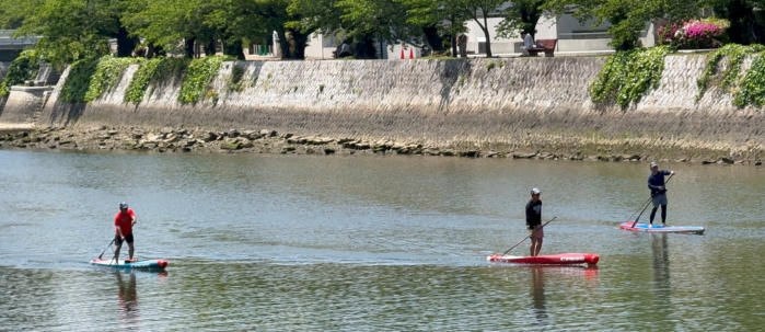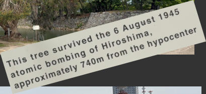 Hiroshima, Castle Hiroshima, Gokoku Schrein Diese Eukalyptusbaum hat  die Atombombenexplosion überstanden Hiroshima Castle Standup Paddlers auf dem Motoyasu River Wettergeschützte Einkaufsstraße Meinen Dank an alle: es war eine tolle Tour!