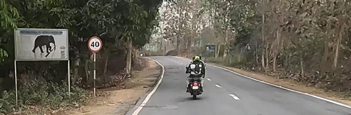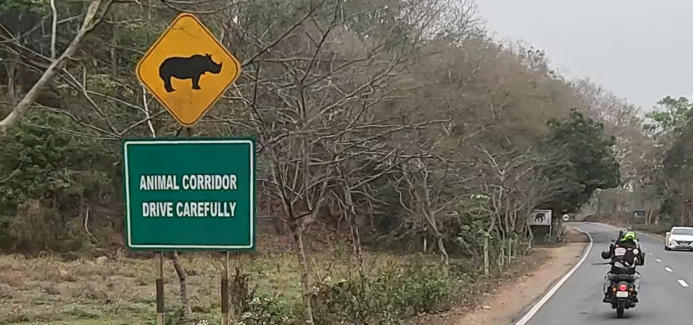 Früher START in Shillong Kleiner Markt am Rand der Straße Den Elefanten haben wir zufällig getroffen Im Tierkorridor wird vor Nashörnern gewarnt Und tatsächlich sehen wir ein Nashorn in freier Wildbahn Hier fängt der Nationalpark an