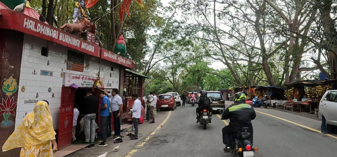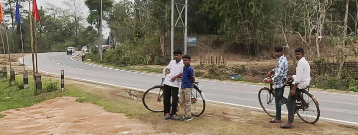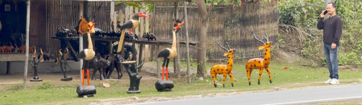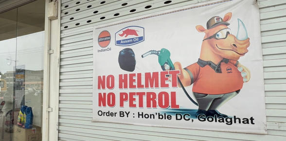 Auf dem Weg zur Baustelle Und noch ein Geisterfahrer auf der Autobahn Da staunen die Jungs, was wir Motorradfahrer treiben Dieses Plakat fand ich an einer Tankstelle. Ohne Schutzhelm kein Benzin. „Dann will ich das Kind mal schaukeln“ Diese Tierfiguren scheinen in Indien sehr begehrt zu sein Wieder im Teegebiet Die Tücher Teepflückerinnen gehen zur Arbeit Ein kleiner Tempel im Naturpark Der Klassiker in Indien: Tiere auf der Fahrbahn Wir biegen zum Hotel ab