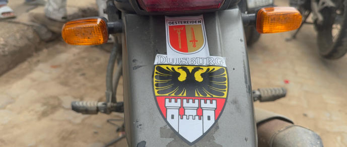 Heute Morgen sind die Straßen leergefegt, sehr Verkehrsarm Die sitzen auf den Bambusstangen, damit sie nicht herunterfallen. Geschwindigkeit: 80 km/h. Eine Prozession auf der indischen Autobahn Die Ortschaften malen die Begrüßung auf die Straße Da will ich mal den Ort Oestereiden bekannter machen Viel Leben im Viertel von unserem Hotel Helmut hat seine Jacke gefunden