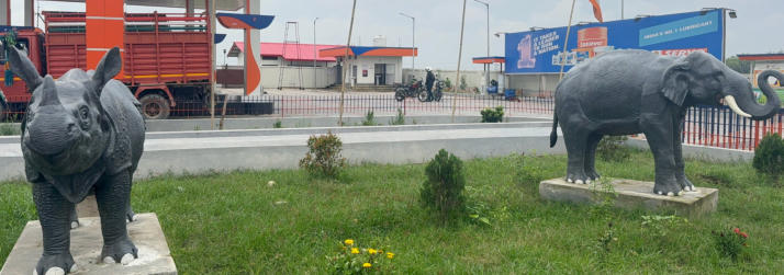 Prozession zu Palmsonntag Heute am Sonntag sind die Straßen extrem verkehrsarm Die Inder haben oft Figuren vor dem Haus stehen Nashorn und Elefant vor der Tankstelle Zum letzten Mal überqueren wir den Brahmaputra Gleich sind wir im Hotel in Nagaon