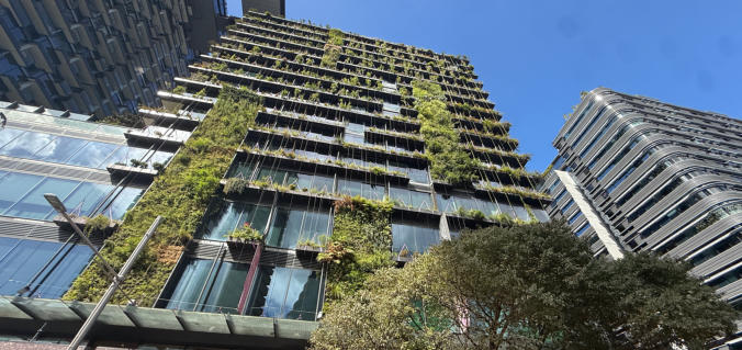 Jetzt aber rein in den Bus Ich sehe viel Grün Sehr viele Hochhäuser Und jetzt einmal ein begrüntes Hochhaus Am Hafen Hier habe ich mich am Mittag etwas gestärkt Wasserspiele in Sydney Großzügig angelegte Radwege in der Innenstadt Viele Passagen und Einkaufszentren Der Gehweg ist voller Menschen Und wieder : grün in der Stadt Ein Springbrunnen direkt neben dem Hotel