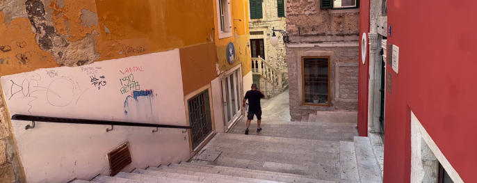 Pünktlich um 9:30 Uhr starten wir in Vodice und es geht bis nach Sibenik. Nach einer Pause geht es hinauf in die Berge nach Trogir. Das letzte Stück nach Split fahren wir nicht mit dem Rad, sondern mit einem Schnellboot.