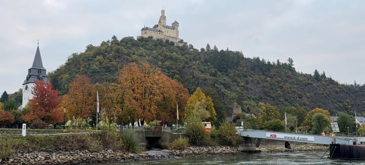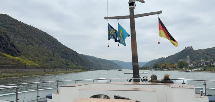 Um 12:00 Uhr legen wir in Braubach ab. Es folgt eine ruhige Sightseeing Tour durch das Rheintal bis Rüdesheim.