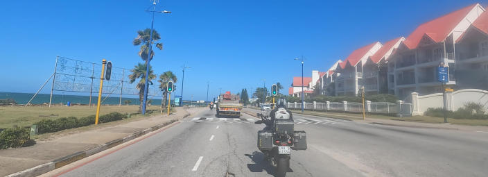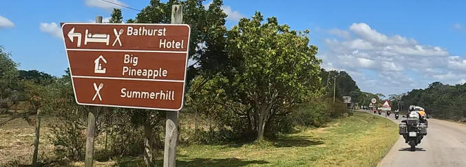 Ausblick vom Zimmer. Morgens früh. Wegweiser zur großen Ananas Und da ist die große Ananas Hier wachsen die Ananas heran Häufig unebener Asphalt Ja, ja, weit ist der Weg Das Landwirtschaftsmuseum Port Elisabeth Wir fahren an unserer Hotelanlage vorbei Vom Hotelzimmer Blick auf den indischen Ozean